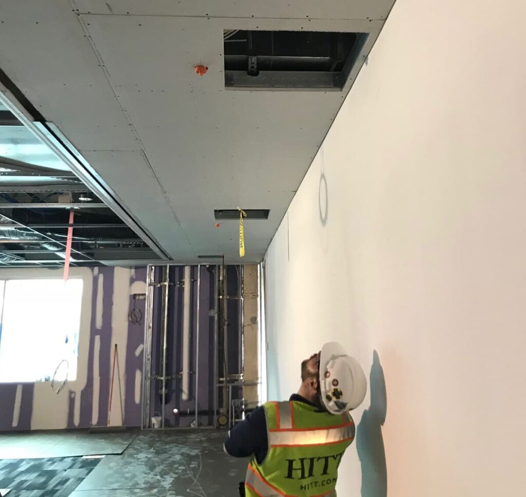 Technically, the access panels were installed properly: they met both industry and client requirements. But they failed to meet HITT’s quality standards for finished work, which requires access panels to be hung in alignment for visual appeal. Despite the client saying it was not necessary, we reworked the layout of the overhead systems to achieve the HITT non-negotiable.