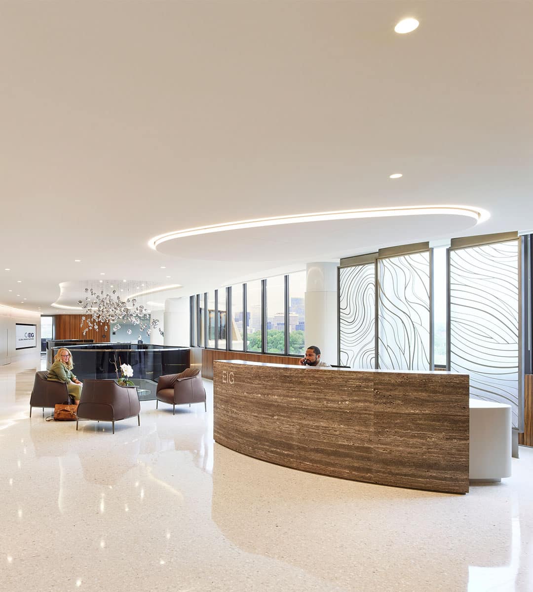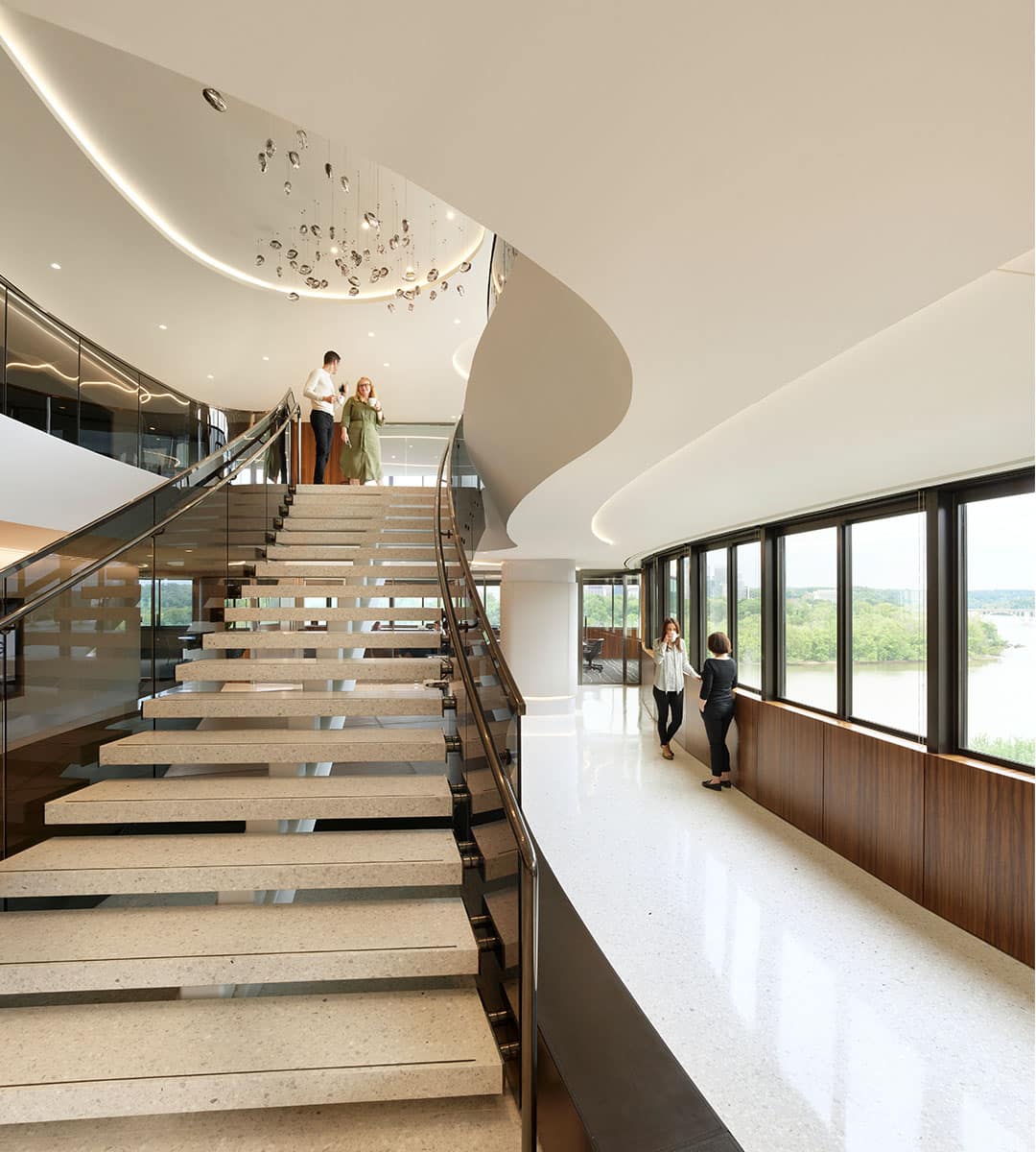 EIG Watergate Washington, DC Project Details LocationWashington, DC ClientEIG Global Energy Partners Contract Value$13,000,000 Square Feet46,100 Year Completed2020 Schedule24 weeks Key PartnersGensler Project TypesLaw FirmsTenant Fit-Outs Awards & CertificationsABC Metro Washington/Virginia, Excellence in Construction Awards, 2020NAIOP, Best Interiors 25-75K, 2020 Project Details LocationWashington, DC ClientEIG Global Energy Partners Contract Value$13,000,000 Square Feet46,100 Year Completed2020 Schedule24 weeks Key PartnersGensler Project TypesLaw FirmsTenant Fit-Outs Awards & CertificationsABC Metro Washington/Virginia, Excellence in Construction Awards, 2020NAIOP, Best Interiors 25-75K, 2020 Project Details LocationWashington, DC ClientEIG Global Energy Partners Contract Value$13,000,000 Square Feet46,100 Year Completed2020 Schedule24 weeks Key PartnersGensler Project TypesLaw FirmsTenant Fit-Outs Awards & CertificationsABC Metro Washington/Virginia, Excellence in Construction Awards, 2020NAIOP, Best Interiors 25-75K, 2020 Project Details LocationWashington, DC ClientEIG Global Energy Partners Contract Value$13,000,000 Square Feet46,100 Year Completed2020 Schedule24 weeks Key PartnersGensler Project TypesLaw FirmsTenant Fit-Outs Awards & CertificationsABC Metro Washington/Virginia, Excellence in Construction Awards, 2020NAIOP, Best Interiors 25-75K, 2020 Project Details LocationWashington, DC ClientEIG Global Energy Partners Contract Value$13,000,000 Square Feet46,100 Year Completed2020 Schedule24 weeks Key PartnersGensler Project TypesLaw FirmsTenant Fit-Outs Awards & CertificationsABC Metro Washington/Virginia, Excellence in Construction Awards, 2020NAIOP, Best Interiors 25-75K, 2020 Overview This project was a high-end tenant fit-out, which included two distinctive interconnecting stairs between the 11th and 12th floors of the historic Watergate. The space features leather and black limba fig wood veneer wall panels throughout with Venetian terrazzo in the client’s forward-facing areas. The office front system and furniture are from Italy by IOC. The scope of work included a large cafe for communal gatherings. The majority of the walls and design elements are curved to mirror the theme of the Watergate. The space captures elements of earth, wind, fire, and water. A Medusa art installation overlooks the reception area staircase. Our Experts Our Experts Our Experts Our Experts Key Team Members Matt Vester Senior Vice President & Office Leader Austin, Dallas & Houston Scott Dutton Vice President & Business Unit Leader Corporate Office – Interiors & Law Firms Washington, DC You might be interested in... Hunton Andrews Kurth LLP Baker Botts LLP