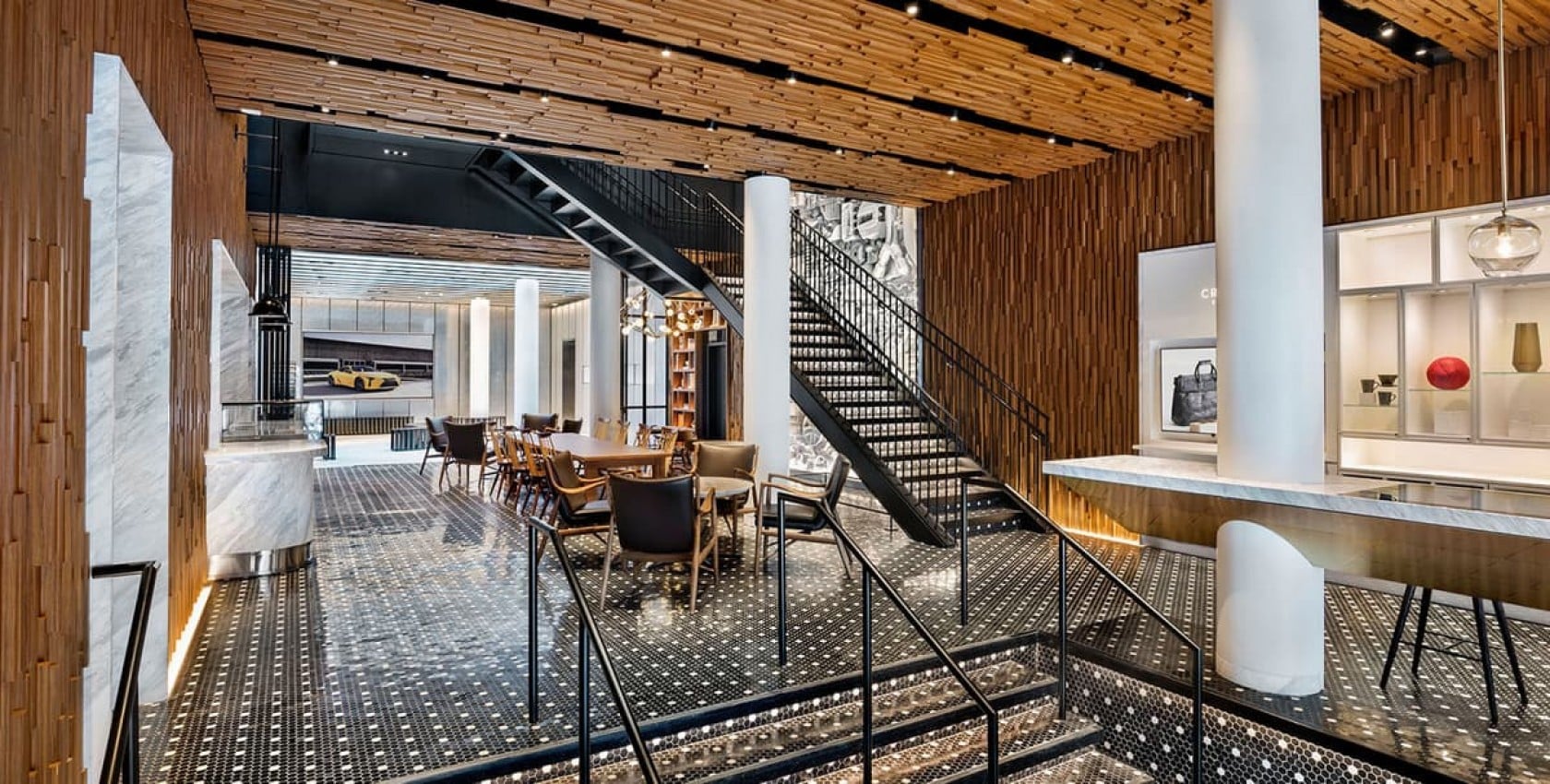 Intersect by Lexus New York City, New York LocationNew York City, New York ClientLexus / Toyota Contract Value$25,000,000 Square Feet22,800 Year Completed2018 Schedule80 weeks Key PartnersGensler Project TypesTenant Fit-outs LocationNew York City, New York ClientLexus / Toyota Contract Value$25,000,000 Square Feet22,800 Year Completed2018 Schedule80 weeks Key PartnersGensler Project TypesTenant Fit-outs LocationNew York City, New York ClientLexus / Toyota Contract Value$25,000,000 Square Feet22,800 Year Completed2018 Schedule80 weeks Key PartnersGensler Project TypesTenant Fit-outs LocationNew York City, New York ClientLexus / Toyota Contract Value$25,000,000 Square Feet22,800 Year Completed2018 Schedule80 weeks Key PartnersGensler Project TypesTenant Fit-outs LocationNew York City, New York ClientLexus / Toyota Contract Value$25,000,000 Square Feet22,800 Year Completed2018 Schedule80 weeks Key PartnersGensler Project TypesTenant Fit-outs Overview Intersect by Lexus is a unique, permanent space in select global cities where people can experience the ethos of the Lexus lifestyle without getting behind the steering wheel of one of their cars. Neither a dealership nor a traditional retail space, Intersect by Lexus is a place for guests to be entertained, inspired, and educated. In Tokyo, Dubai and now New York, it serves as a creative space where ideas and people converge. Americon HITT was contracted by Toyota / Lexus for this high-end custom interior project in 2017. Features include a custom 3D wood ceiling and wall paneling, custom-built radiused bar, herringbone wood flooring, mosaic stone tile flooring, custom Eventscape garage area, and marble stone from China. A metal car part collage is displayed next to a new monumental stair and bridge which connects the first and second floors and spans nearly 25 feet high. Custom auto-sliding pocket doors were installed to separate the kitchen and café areas from public spaces. Event space sits atop the third floor and encapsulates the area in a soundproof environment for private events. High-end kitchen equipment, custom wine units, and a dining area rest on the second floor. Heavy structural dunnage was installed on the roof for new rooftop units and acoustical roof barriers. The third of its kind, Intersect by Lexus NYC ives in the heart of the vibrant Meatpacking District and continues Lexus’ commitment to supporting innovation on a local, national, and global level. As a lifestyle hub, the New York location merges innovative programming, culinary creativity and masterful design for an immersive cultural experience. Our Experts Our Experts Our Experts Our Experts Key Team Members Cliff Chow Senior Vice President & Office Leader New York Bernadette Barnett Director, Business Administration New York
