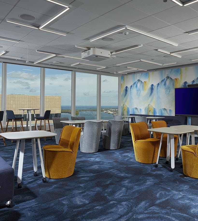 Large Professional Services Firm Miami, Florida LocationMiami, Florida ClientConfidential Contract Value$5,313,000 Square Feet16,000 Year Completed2022 Schedule18 weeks Key PartnersGensler Project TypesOfficeTenant Fit-outs LocationMiami, Florida ClientConfidential Contract Value$5,313,000 Square Feet16,000 Year Completed2022 Schedule18 weeks Key PartnersGensler Project TypesOfficeTenant Fit-outs LocationMiami, Florida ClientConfidential Contract Value$5,313,000 Square Feet16,000 Year Completed2022 Schedule18 weeks Key PartnersGensler Project TypesOfficeTenant Fit-outs LocationMiami, Florida ClientConfidential Contract Value$5,313,000 Square Feet16,000 Year Completed2022 Schedule18 weeks Key PartnersGensler Project TypesOfficeTenant Fit-outs Overview The interior fit-out of this large professional services firm's office creates a highly collaborative, flexible, and productive community and teamwork environment. Features of the work include collaborative enclaves for small in-person meetings and private work, team rooms for small group collaboration, and an exploration studio for active and engaged learning, training meetings, and events. Two new conference rooms serve as formal client and visitor spaces with custom wall graphics and coverings that compliment the look of the space. Audiovisual package components for these spaces and others throughout the office used Crestron controls and are fully automated. A catering kitchen equipped with a commercial refrigerator, dishwasher, and warming oven provides support for events. The HITT team's greatest challenge and priorities throughout the project were tracking long lead materials and confirming delivery dates, as a procurement schedule was updated weekly. Our Experts Our Experts Our Experts Our Experts Key Team Members Brian Kilpatrick Vice President & Office Leader Fort Lauderdale You might be interested in... Hunton Andrews Kurth LLP One Biscayne Tower Lobby