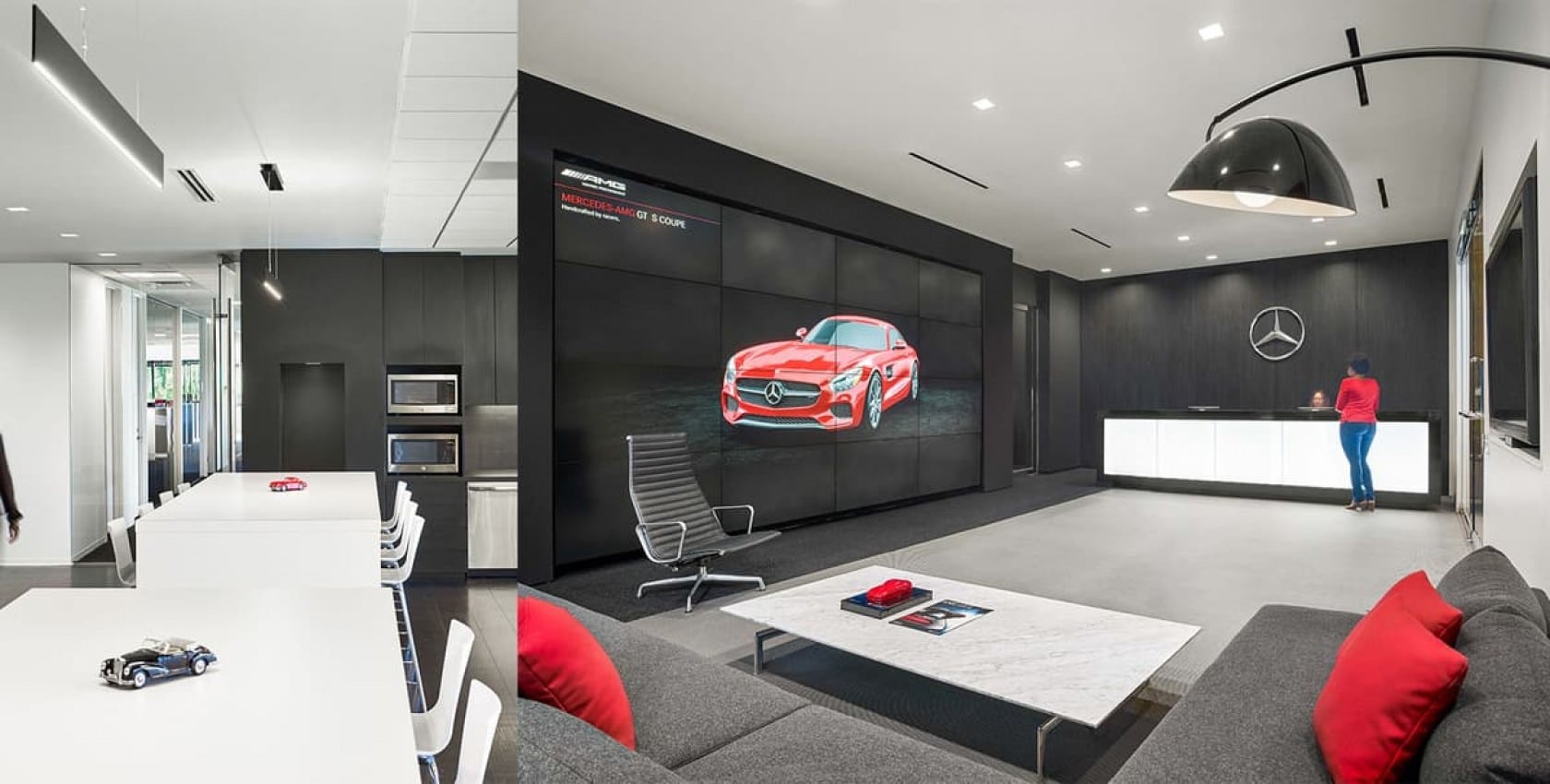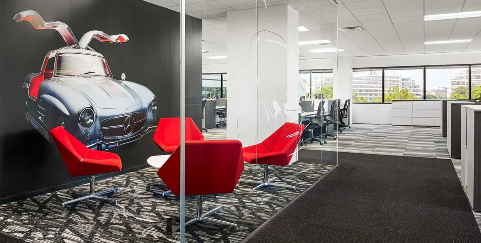 Mercedes-Benz USA Transitional Headquarters Office Atlanta, Georgia LocationAtlanta, Georgia ClientMercedes-Benz USA Contract Value$5,200,000 Square Feet90,000 Year Completed2015 Schedule16 weeks Key PartnersGenslerGray & Postell Project TypesOfficeTenant Fit-outs Awards & CertificationsABC Georgia, Excellence in Construction, Award of Merit, 2016 LocationAtlanta, Georgia ClientMercedes-Benz USA Contract Value$5,200,000 Square Feet90,000 Year Completed2015 Schedule16 weeks Key PartnersGenslerGray & Postell Project TypesOfficeTenant Fit-outs Awards & CertificationsABC Georgia, Excellence in Construction, Award of Merit, 2016 LocationAtlanta, Georgia ClientMercedes-Benz USA Contract Value$5,200,000 Square Feet90,000 Year Completed2015 Schedule16 weeks Key PartnersGenslerGray & Postell Project TypesOfficeTenant Fit-outs Awards & CertificationsABC Georgia, Excellence in Construction, Award of Merit, 2016 LocationAtlanta, Georgia ClientMercedes-Benz USA Contract Value$5,200,000 Square Feet90,000 Year Completed2015 Schedule16 weeks Key PartnersGenslerGray & Postell Project TypesOfficeTenant Fit-outs Awards & CertificationsABC Georgia, Excellence in Construction, Award of Merit, 2016 Overview This new 90,000-sf space functioned as Mercedes-Benz USA's temporary headquarters while the firm relocated its main office from New Jersey to Atlanta, bringing 1,000 local jobs to the area. This five-floor tenant build-out project occurred in an occupied building. The project consisted of selective demolition including raised access flooring and masonry. New construction for Mercedes' space included the reception desk, video wall, specialty finishes throughout, elevator lobbies, break room, new ADA restrooms, supplemental HVAC, soundmasking, and security. The typical workspace area is an open office environment that incorporates LED lighting, carpet tile, writable wall surfaces, and daylight views as well as glass front conference rooms and private offices. Common areas such as elevator lobbies and reception areas received higher end finishes, including woven vinyl flooring, wood veneer wall paneling, graphic wallcovering branding walls, a 16 flat screen TV video wall, and a custom reception desk with backlit panels. The employee break areas include custom laminate millwork with solid surface countertops, vinyl plank flooring, all glass entrances, stainless steel appliances, built-in banquette seating, and upgraded light fixtures. The HITT team pre-released long lead items and mobilized on-site before receiving 100 percent construction documents. This fast-track approach allowed them to meet the aggressive move-in date. You might be interested in... Next NGA West (N2W) Sibley Hospital MOB, Garage and Cancer Center